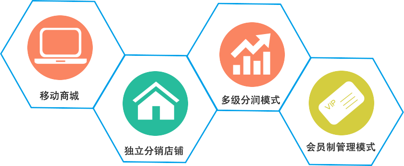 集“移動商城+獨立分銷店鋪+多級分潤模式/會員制管理模式